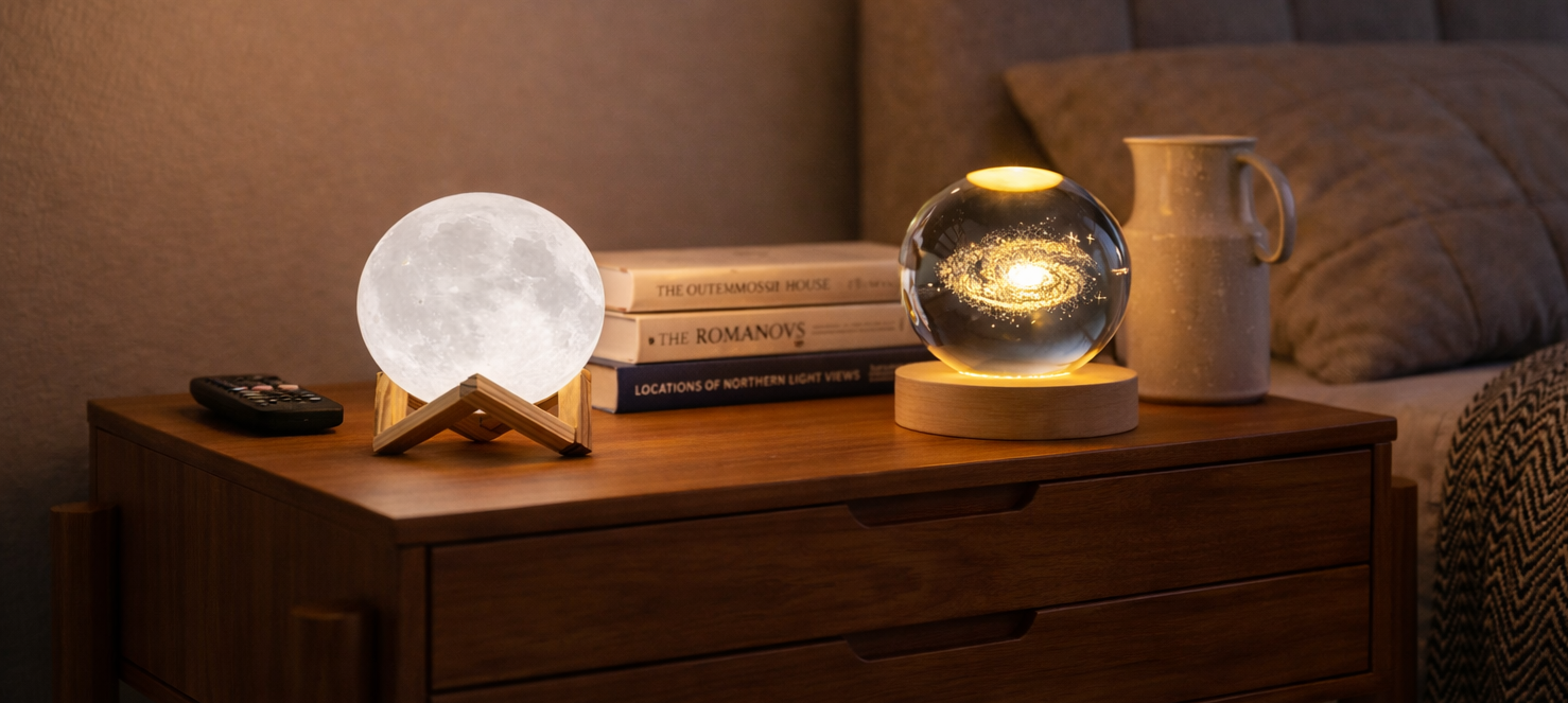 Bring the beauty of the universe into your home. This stunning crystal ball lamp creates a magical 3D effect, lighting up your space with a warm, calming glow. Perfect as a unique decor piece or a memorable gift, it instantly adds elegance and atmosphere to any room.